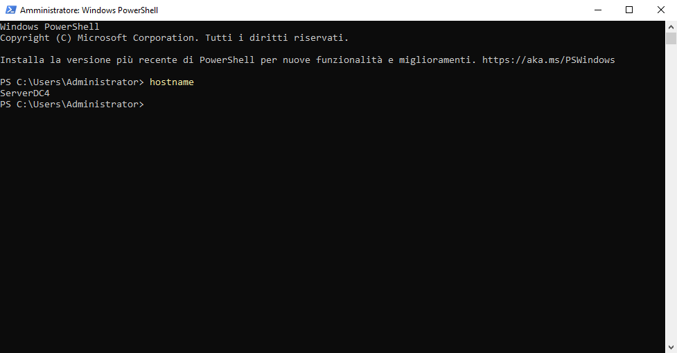 Per visualizzare il nome del server in PowerShell possiamo sfruttare il metodo GetHostName() della classe System.Net.Dns eseguendo il comando
